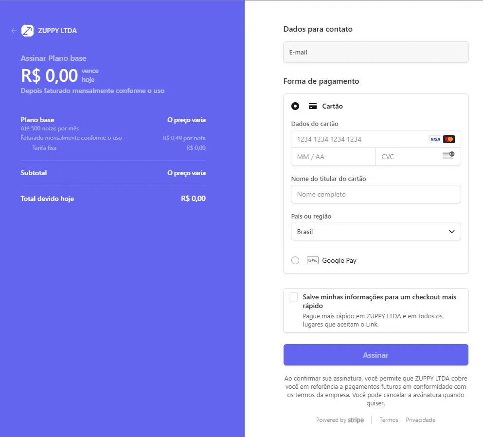 Na Zuppy, você só paga pelo que usar. Nada de mensalidade mínima, planos engessados ou limite de notas. Se não emitir nenhuma nota em um ciclo, o valor cobrado será R$ 0,00.
