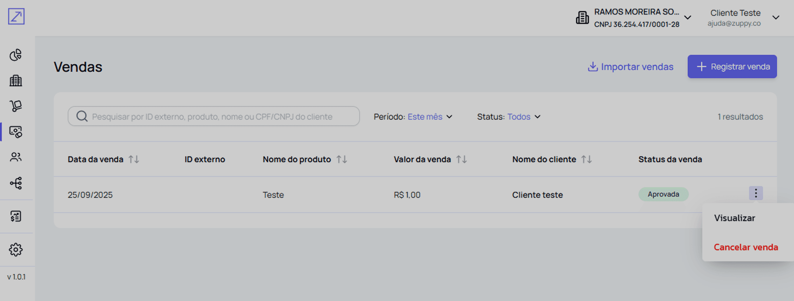 Quando a Zuppy receber a venda, ela aparecerá no seu painel de Vendas.