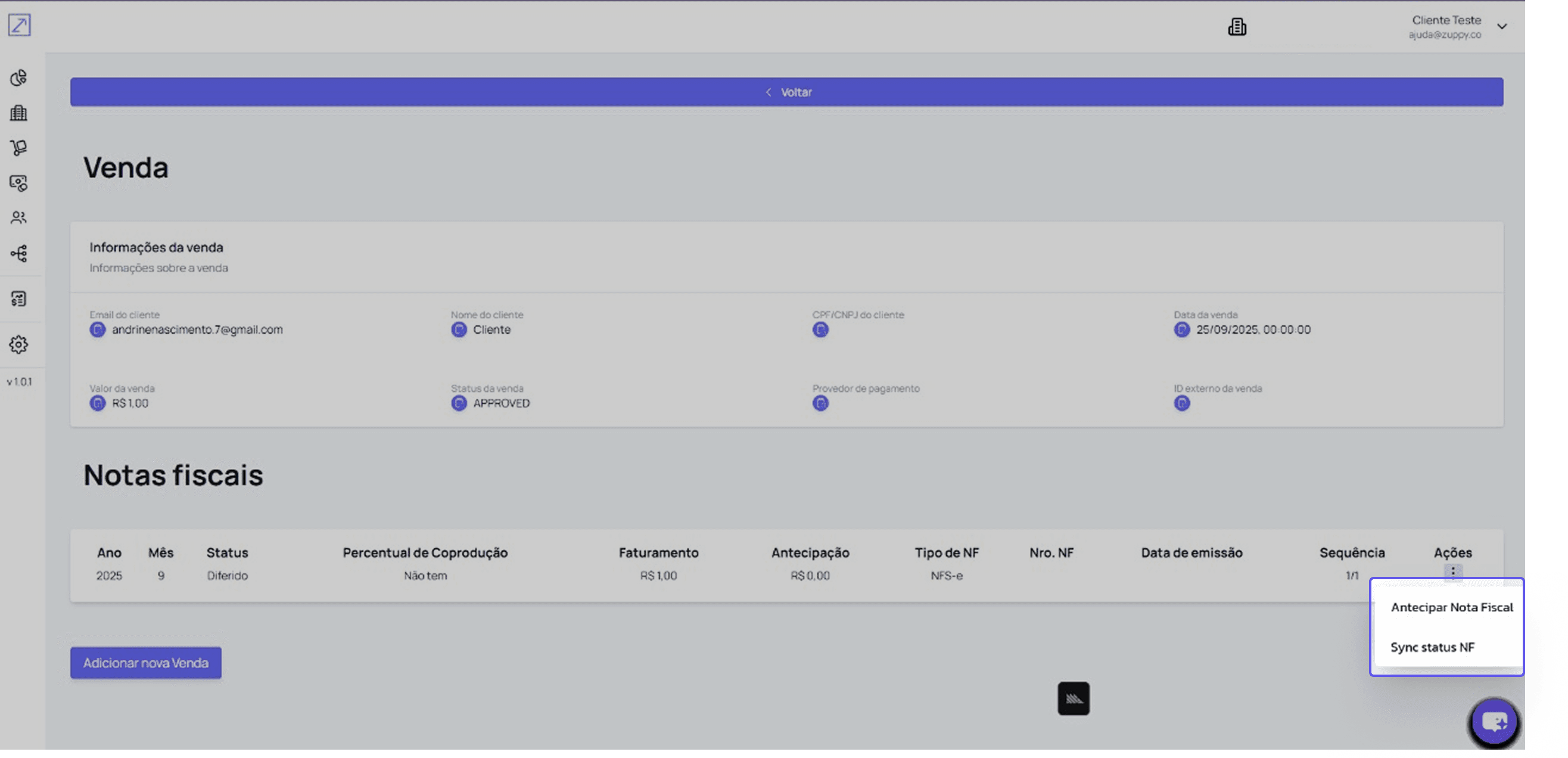 Como emitir uma nota fiscal de teste na Zuppy