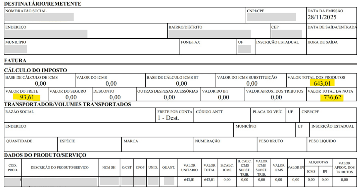 A Zuppy calcula o valor total da nota conforme o tipo de nota emitida e, quando necessário, divide os juros proporcionalmente entre notas diferentes.